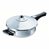 2.5-quart pressure cooker for small households. Waffle-texture base for fat-free sauteing and frying. User-friendly operation. 5 integrated safety systems. 18/10 stainless steel construction.This is not your grandmother's pressure cooker. After two generations of busy cooks employed pressure cookers to prepare family meals, the next generation--with memories of valves dancing and hissing on stovetops--then snubbed pressure cookers. Now pressure cookers have come back, those old valves replaced by modern versions that ensure safety while delivering the speed, ease, and nutritional benefits of pressure cooking.This heavyweight 18/10 stainless-steel beauty is a fine example of contemporary engineering and style. Its mirror finish gleams, and its black handles stay cool. Its spring valve doesn't hiss unless too much steam has built up and the heat needs turning down. Two other valves offer backup safety, and the top automatically locks until all pressure has been released. Pressure-cooking traps steam to heat foods at temperatures higher than boiling. This cooker has an aluminum disk sandwiched by stainless steel in its base to speed the process even more through fast heat conductivity. Little water is required, so nutrients, flavor, and color are not boiled away.